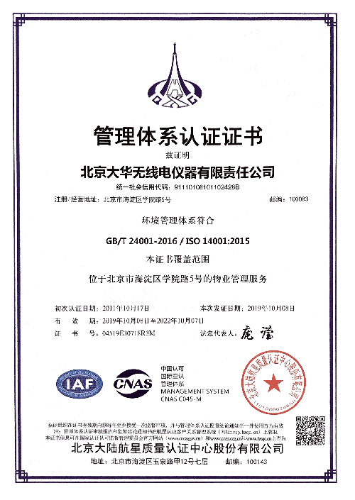 環(huán)境管理體系證書
