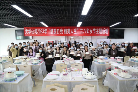 3月8日下午,在北京768創(chuàng)意產(chǎn)業(yè)園F座內(nèi),一派趣味盎然的景象:大華公司80多位女職工圍坐在一起,在老師的指導(dǎo)下,以奶油和各類新鮮水果為食材,精心制作心愿中最甜美的蛋糕城堡。女同胞們四人一組,或有說有笑熱切交流,或沉思凝想認(rèn)真雕琢;有的專心致致涂抹奶油,有的以不同水果或糖果作畫,有的儼然化身制作能手給身邊伙伴以指點……雖然是第一次集體體驗蛋糕制作,也許手法并不熟練,但大家都異常投入,場面溫馨而熱烈,賦予這個春日午后無限的詩情和畫意,也定格了許多開心愉悅的畫面和記憶,充分詮釋了“綻放自我甜美人生”的“三八”節(jié)活動主題。