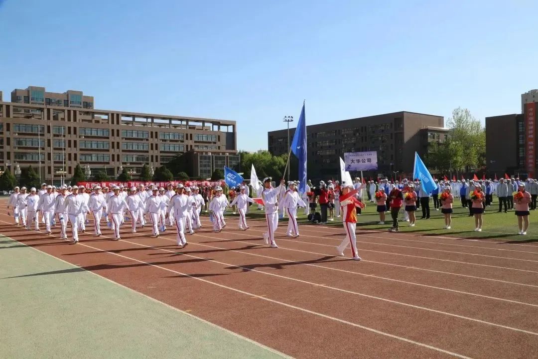 大華冠晨纓,步步龍虎行;甲子又五載,深藏身與名。伴隨著鏗鏘律動(dòng)的運(yùn)動(dòng)員進(jìn)行曲,由36人組成的大華方隊(duì),身著紅白相間的運(yùn)動(dòng)服,齊聲高喊“堅(jiān)韌執(zhí)著、團(tuán)結(jié)協(xié)作、追求卓越、共創(chuàng)未來”的口號,揮舞著藍(lán)色的司旗,精神抖擻地走過大會(huì)主席臺(tái)。