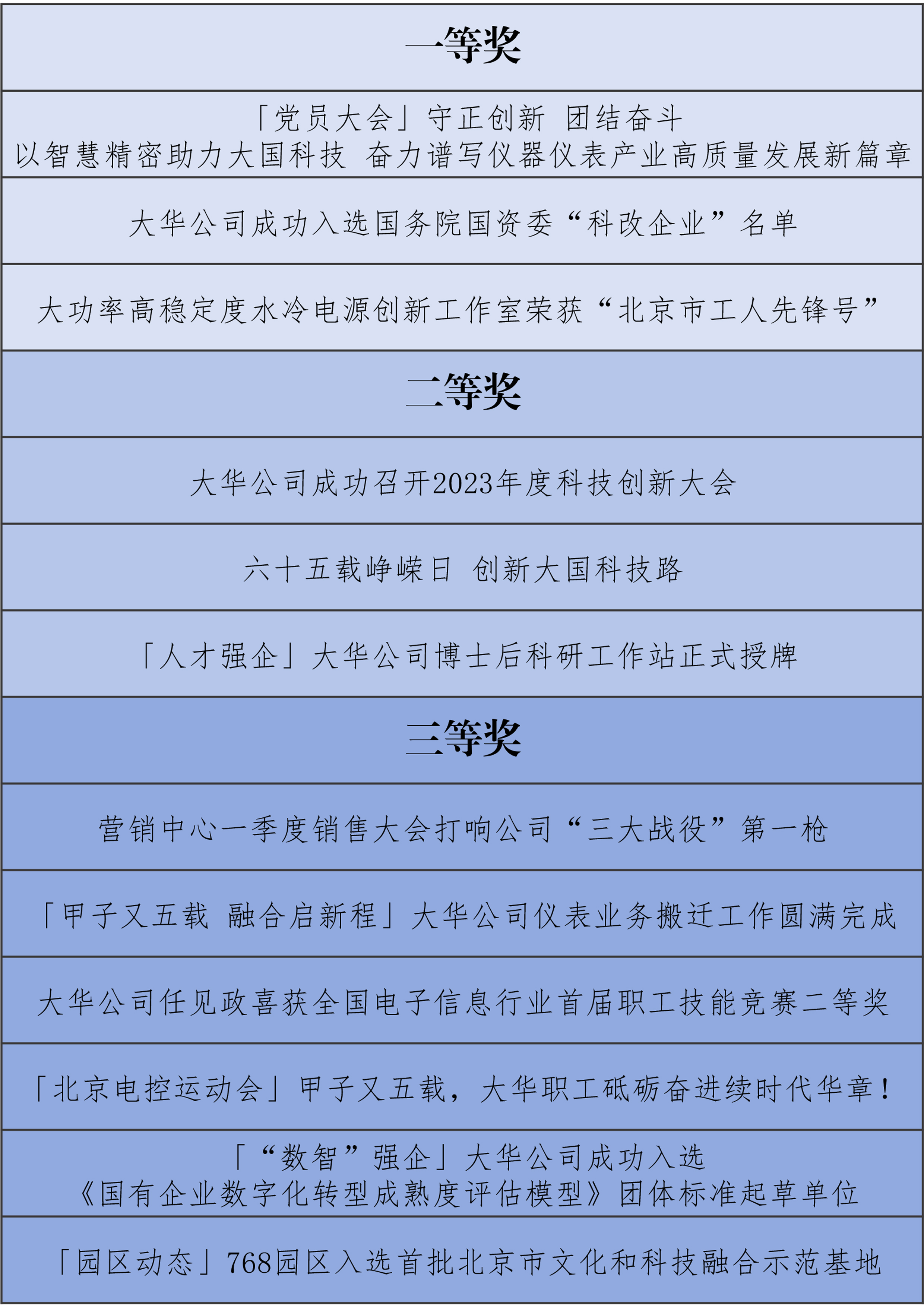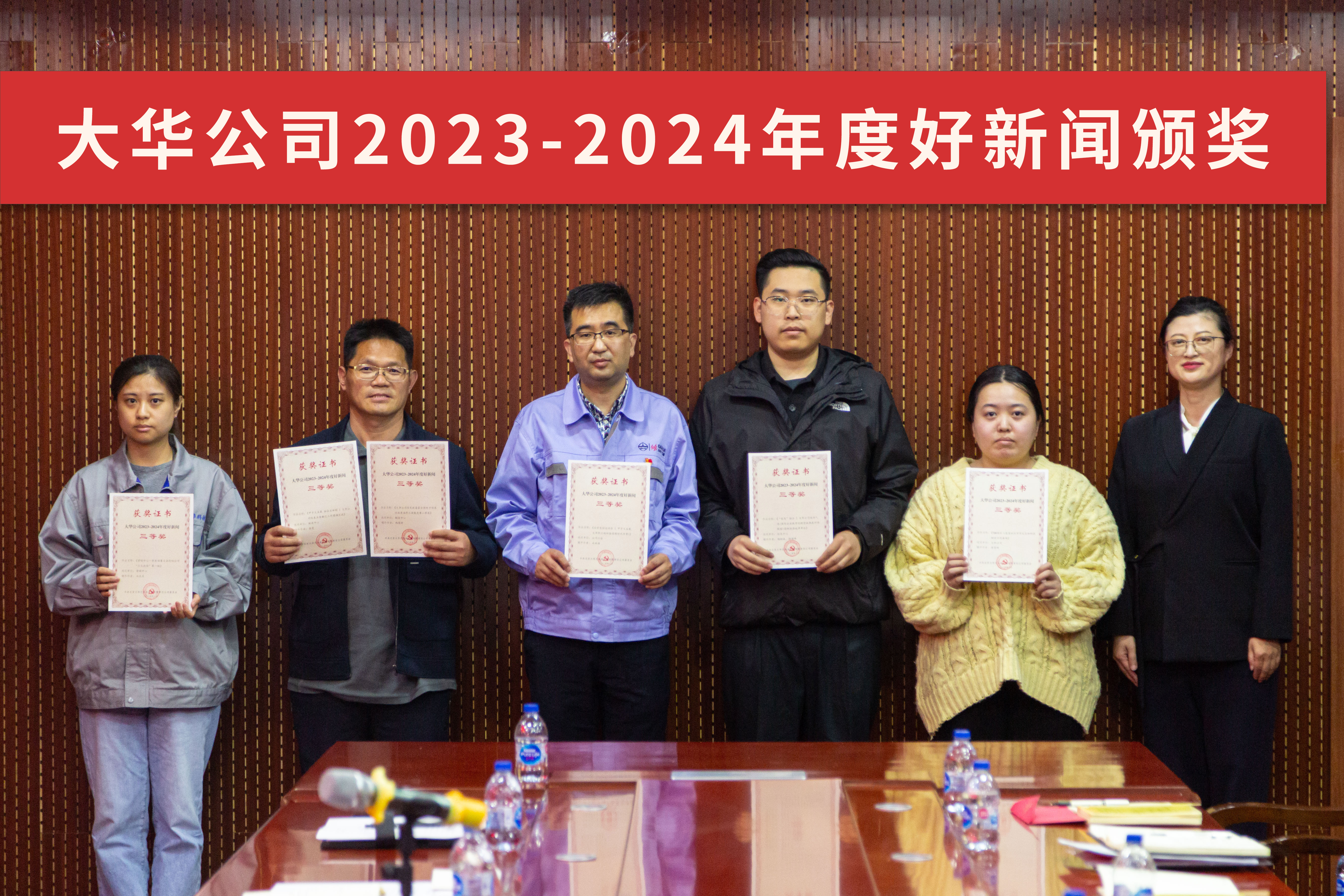 本次會議還對大華公司2023-2024年度好新聞進(jìn)行了頒獎。大華公司年度好新聞評選,側(cè)重在改革創(chuàng)新、經(jīng)營管理、科技研發(fā)、市場開拓、生產(chǎn)制造、精神文化、黨的建設(shè)等各領(lǐng)域的優(yōu)秀成果、先進(jìn)事跡及基層一線典型報道。作品導(dǎo)向正確、內(nèi)容真實、新聞性強(qiáng),旨在發(fā)揮新時期宣傳思想文化工作作用,助力年度重點任務(wù)和各項目標(biāo)高質(zhì)量完成。公司黨委書記、董事長董永生,黨委副書記、紀(jì)委書記、工會主席李廣南,黨委委員、財務(wù)總監(jiān)、總法律顧問邵楠分別為12件優(yōu)秀作品頒發(fā)一、二、三等獎證書。