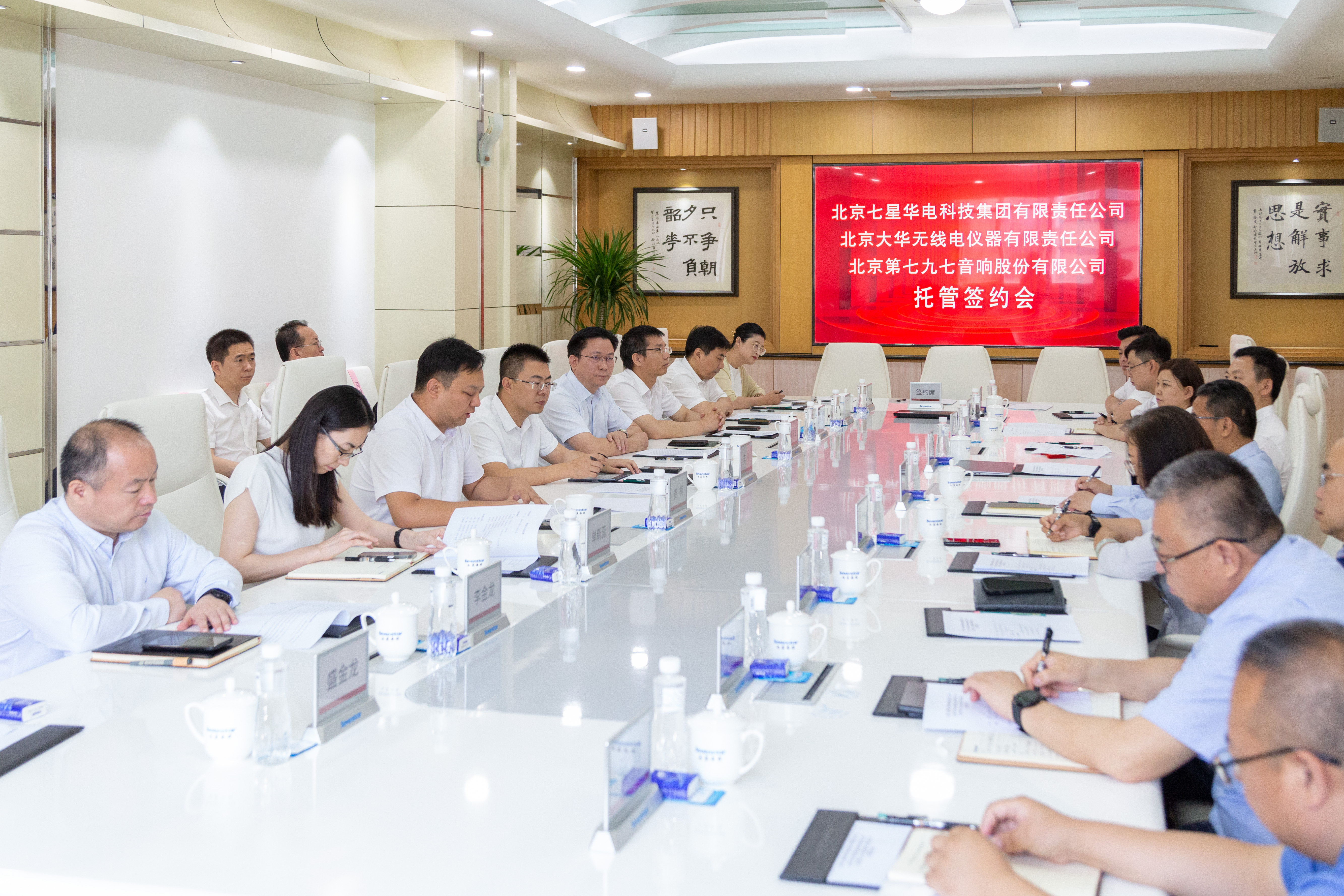 5月30日上午,北京電控所屬大華公司、七星集團就七九七音響股權(quán)委托管理召開簽約會,宣讀北京電控關(guān)于七星集團所持七九七音響股權(quán)委托大華公司管理的批復(fù),并簽署《股權(quán)委托管理協(xié)議》。北京電控戰(zhàn)略發(fā)展中心副總監(jiān)李禮,大華公司、七星集團、七九七音響領(lǐng)導(dǎo)班子成員出席會議。