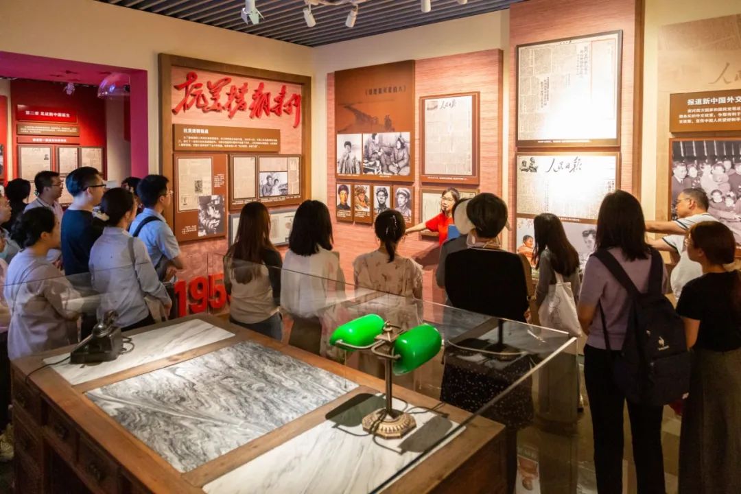 隨后,大家來到了人民日報(bào)社史館。社史館由序廳、中共中央機(jī)關(guān)報(bào)的歷史沿革、解放前夕的人民日報(bào)、記錄中華民族站起來的奮斗歷程、見證中華民族富起來的偉大實(shí)踐、書寫中華民族強(qiáng)起來的恢弘篇章等六個展廳構(gòu)成,忠實(shí)記錄了人民日報(bào)在炮火中誕生,在硝煙中成長,經(jīng)歷一個由小到大、由弱到強(qiáng)、由地方性報(bào)紙到全國性大黨報(bào)的艱苦創(chuàng)業(yè)、忘我奉獻(xiàn)與輝煌發(fā)展史,特殊的奮斗歷程包含著黨中央的正確決策,也展示人民日報(bào)面向未來發(fā)展的憧憬與夢想。