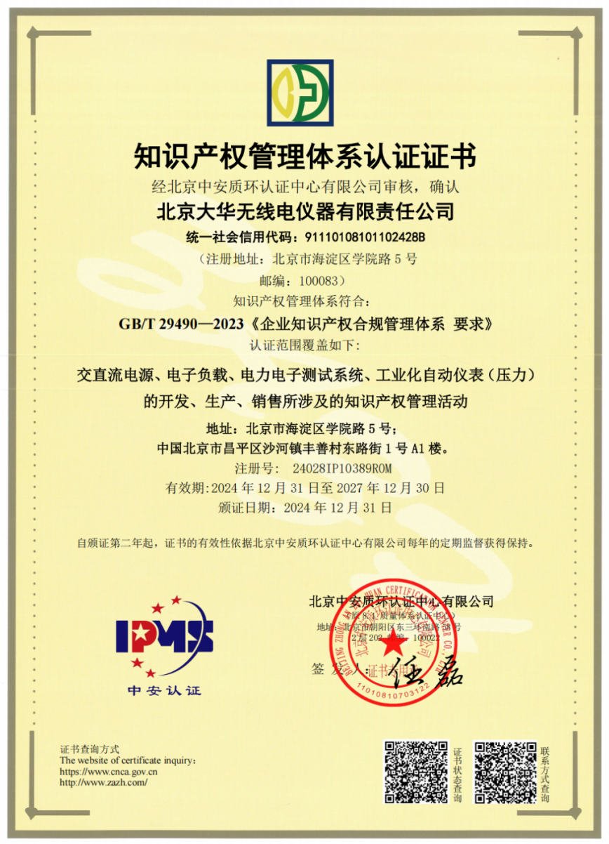 大華公司作為國有科技型企業(yè),在儀器儀表行業(yè)深耕多年,始終高度重視知識產權管理,積累了豐富的專利成果。2024年公司進一步加大專利申請力度,其中“大功率水冷電源關鍵技術研究及應用”項目在第二十八屆全國發(fā)明展覽會上榮獲金獎。這些工作成果不僅為此次通過知識產權管理體系認證奠定了基礎,更為公司創(chuàng)新發(fā)展提供了技術支撐和保障。
